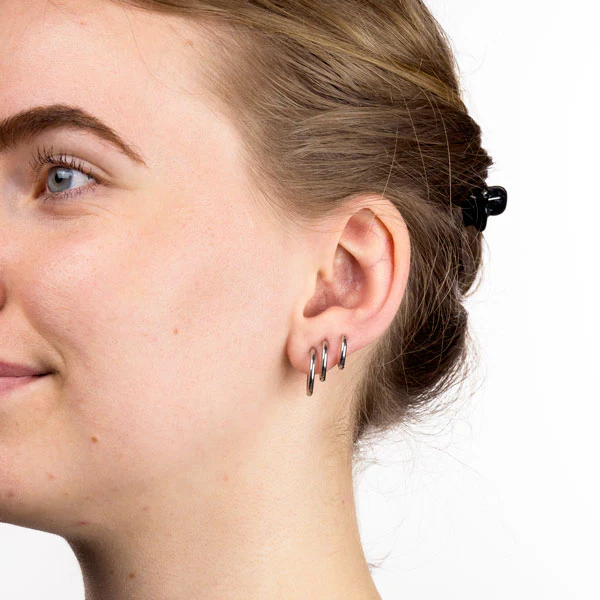 Hoops-örhängen i silvrigt kirurgiskt stål – Släta silverringar