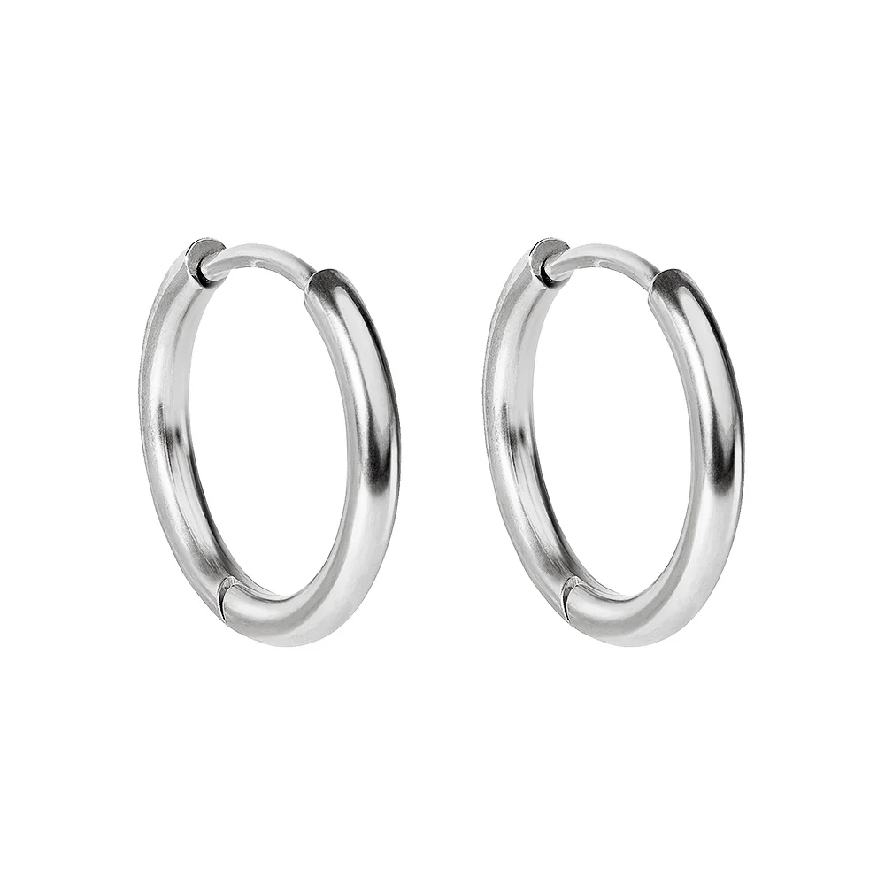 12 mm släta silvriga hoops i kirurgiskt stål – Huggie örhängen