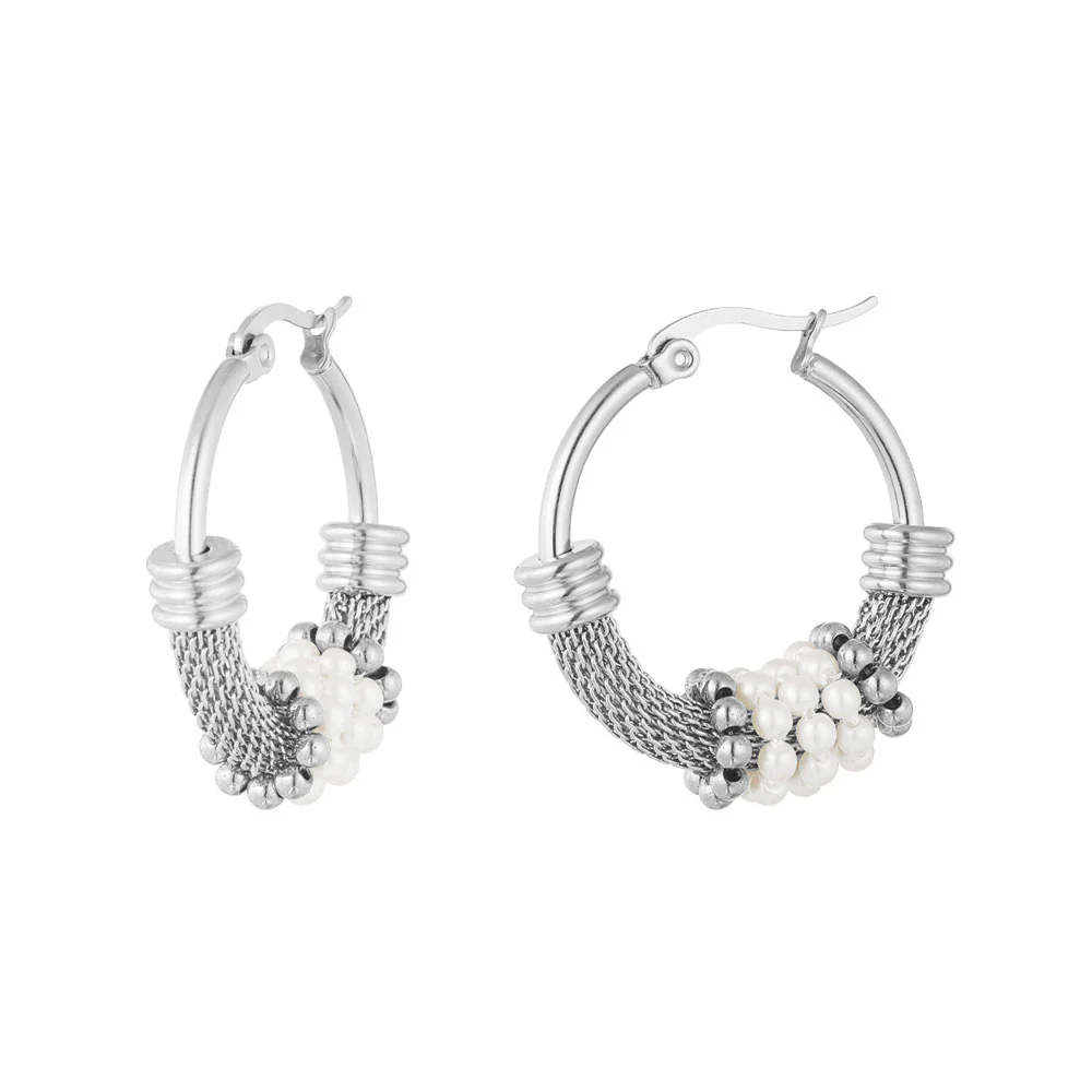 Bali hoops örhängen – Silverringar i kirurgiskt stål med vita pärlor