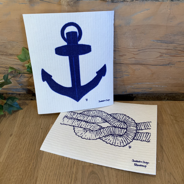 Disktrasa med ”Råbandsknop” i blått, SundbodenDesign. Vi målar motiv som sedan trycks på disktrasor som tillverkas i Sverige.