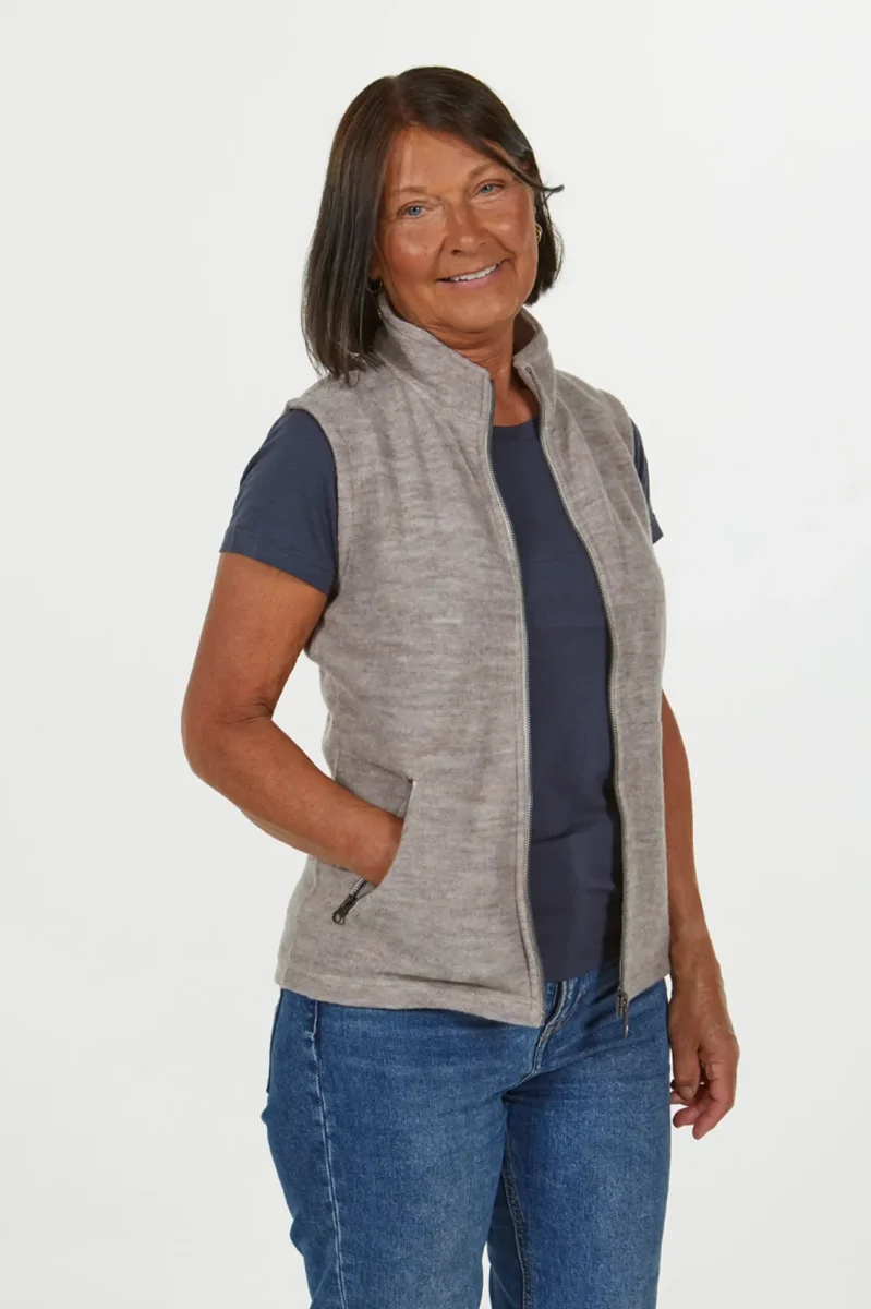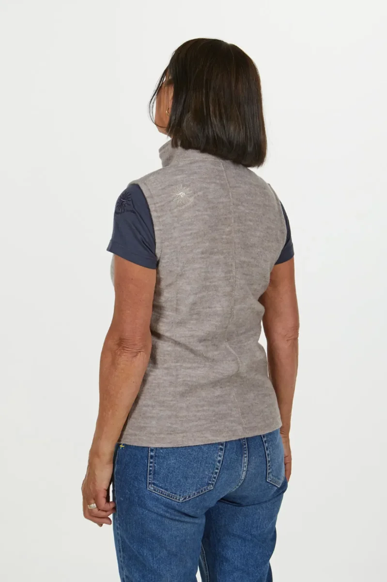 Flora Vest är en snygg, klassisk väst i 60% ull och 40% TENCEL™. Det stickade material är pläterat, med TENCEL™ närmast kroppen vilket ger en mjuk och behaglig känsla. Hel dragkedja framtill och dragkedja i sidfickorna. Lätt insvängd passform och brodyr baktill på vänster skuldra. Perfekta plagget som passar till vardags såsom de som är aktiva. Denna modellen finns även som tröja och heter Bella full zip.