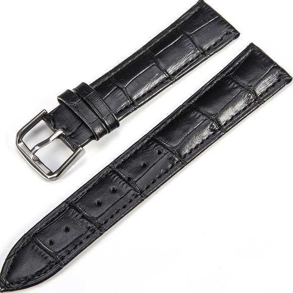 Klockarmband 21mm, 19mm, 17mm, 15mm, 13mm, 10mm – Svart krokodilmönster – Äkta kalvläder