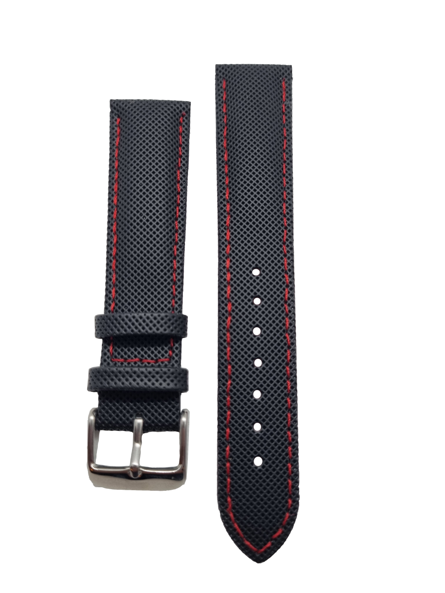 12mm Klockarmband R.Elia – Blankpolerad svart slät i äkta läder
