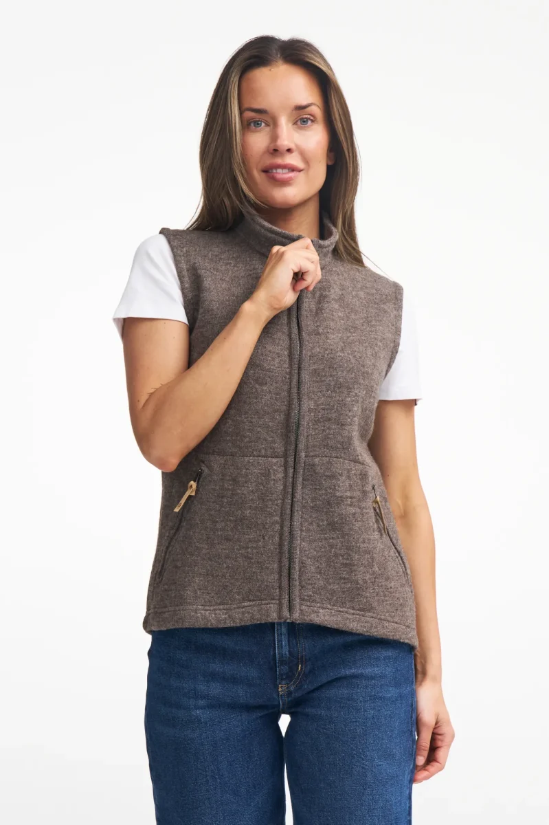 NLS COCO VEST, 100% OFÄRGAD ULL — NUTMEG