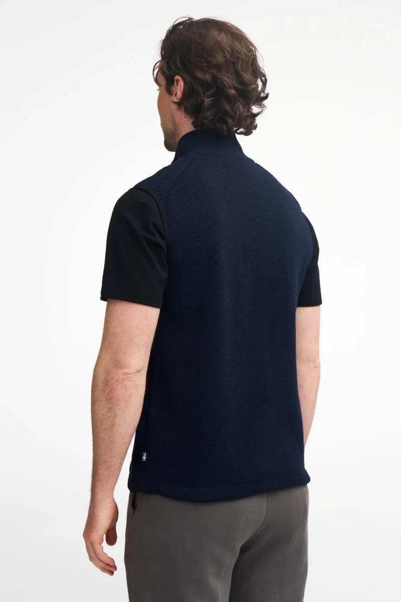 Ullväst med partier i teknisk strukturstickning.