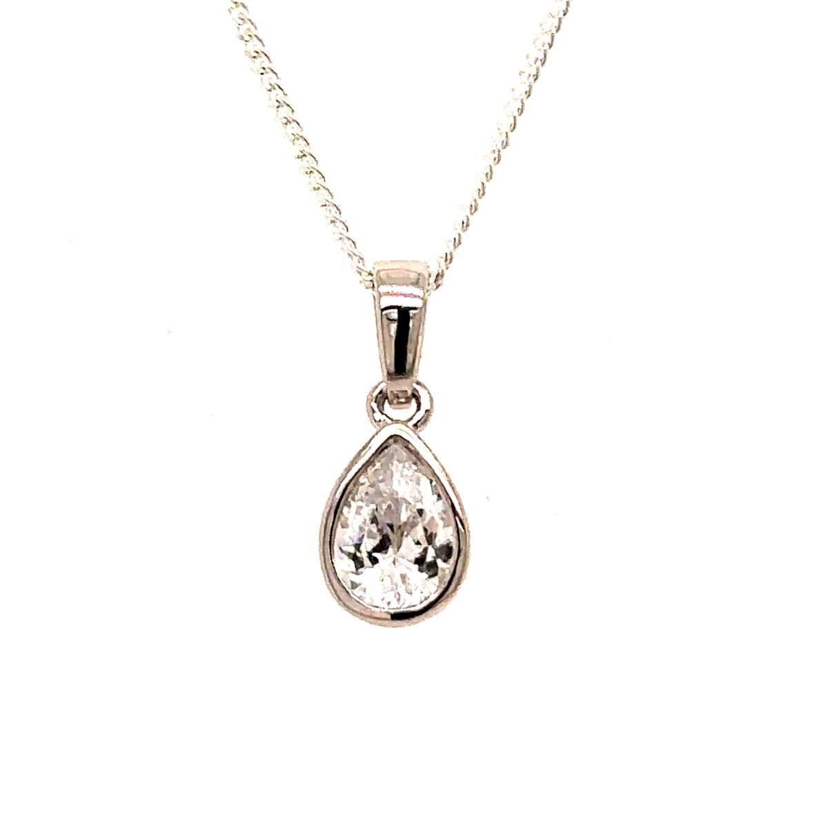 Silverhalsband med droppe . Droppformad sten infattad i silver med en 42 cm lång kedja